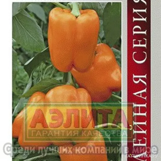 Раннеспелый сорт, рекомендован для выращивания в открытом грунте и под пленочными укрытиями. Плоды крупные, массой до 200 г, прямоугольные, гладкие, толстостенные (6-8 мм), с очень привлекательной оранжевой окраской. Вкусовые качества отличные. Сорт идеален для использования в свежем виде, в кулинарии и для консервирования.