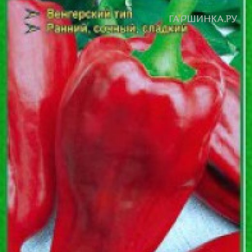 Сладкий среднеранний пластичный сорт венгерского типа. Средний размер плодов 15 х 8 см. Мощное облиственное растение. Хорошая завязываемость плодов даже в стрессовых условиях, характерна устойчивость как к пониженным, так и к повышенным температурам. Выращивать возможно в открытом грунте, парниках и теплицах. Высокое содержание сухого вещества позволяет использовать плоды для получения пасты, консервирования, гриля и свежего потребления. Плоды сохраняют плотность даже при полном созревании до насыщенно-красного цвета, что благоприятно влияет на обмен веществ в организме, укрепляет кровеносные сосуды. При хранении не теряют полезные соединения, а количество витамина C даже может увеличиваться.