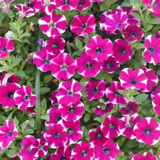 Петуния вегетативная Каскадиас Биколор Каберне - оригинальной, необычайно яркой окраски. Цветы ярко-тёмно-вишневые с белыми секторами и темным горлышком. Смотрится чудесно!