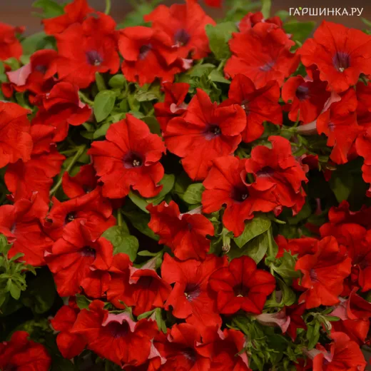 Петуния вегетативная Каскадиас Чили Ред - одна из самых популярных серий каскадной петунии с очень эффектными окрасками цветков. Отличается высокой силой роста, исключительной устойчивостью к непогоде и обильным ранним цветением. Образует пышный шар диаметром до 80 см, идеально подходит для кашпо.