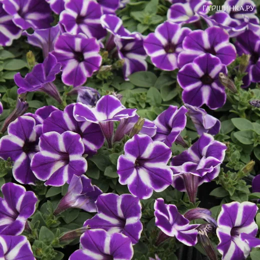 Петуния вегетативная Каскадиас Пепл Джем - Ярко-фиолетовые цветки с белой звездой обильно и продолжительно цветут – с июня по октябрь. Образует великолепные пышный шар. Высота 25-35 см, длина побегов 65-70см. Цветы средние 4-5 см. Выращивается преимущественно в садовых кашпо или подвесных корзинах. Устойчивость к неблагоприятным погодным условиям. Большая сила роста и суперобильное цветение.