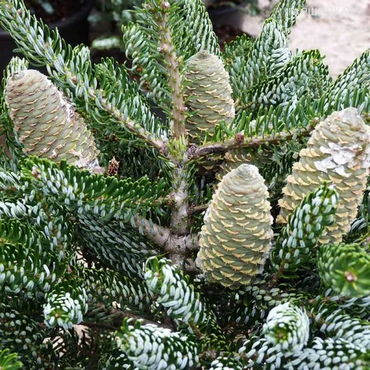 Очень интересной особенностью корейской пихты является обильное плодоношение даже в очень молодом возрасте. Вертикально стоящие яркие шишки смотрятся на яркой зеленой пихте, как новогодние игрушки. Высота корейской пихты до 10 м. Крона широкая, форма может быть разнообразной в зависимости от способа формирования, часто с несколькими вершинами. Плоды- многочисленные фиолетовые шишки, длиной до 7 см, прямостоячие, очень декоративные, часто с крупными каплями ароматной смолы, даже на молодых растениях отличается также медленным ростом и ярко выраженной ярусностью ветвей. Высота 30 летней пихты корейской составляет 3-4м. Ежегодный прирост в наших климатических условиях составляет 3 - 5см в год. Хотя родина корейской пихты и является Южная Корея, но там они растут только в горах: в зоне высокого уровня осадков, прохладного лета и тяжелых зимних снегопадов.