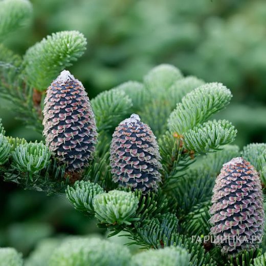 Хвоя у дерева представляет собой закрученные по спирали иголки, длина которых будет составлять порядка 2 сантиметров при ширине порядка 0,3 сантиметра. При этом окрас ее будет насыщенно-зеленый, ближе к столу цвет может иметь сизые оттенки. На нижней части хвои обычно присутствует пара полос серебристого цвета. Плоды у пихты представлены шишками цилиндрической формы, которые развиваются в вертикальном положении относительно культуры, их размер может достигать 7 сантиметров, при ширине порядка 3 сантиметров. Молодые шишки окрашены в фиолетовый цвет, в процессе созревания они меняют свой окрас на коричневый. Культура довольно востребована в плане укоренения в открытом грунте, поэтому используется для выращивания в частных садах и приусадебных участках, а также в оформлении общественных территории, городском озеленении.