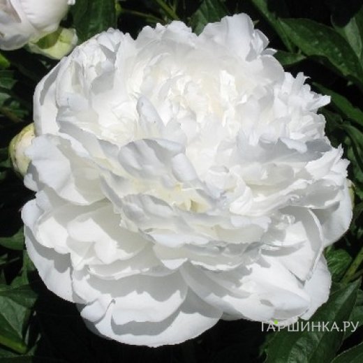 Пион Bunker Hill - Махровый, розовидный. Белый с кремово-розовым насыщением, позднее чисто-белый. На прочных стеблях до 3 бутонов. Тонкий аромат.