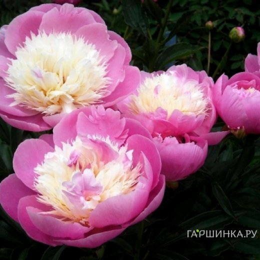 Размножение Пион Боул оф Бьюти (Bowl of Beauty). Размножать пионы можно семенами и вегетативно. Семенами размножают только дикорастущие виды. Наиболее простым и эффективным способом яляется размножение делением куста. Для этого подходят 3-4 летние растения, уже цветущие, с хорошо развитым корневищем. Деление проводят с середины августа до конца сентября. На каждой деленке должно быть 2-3 почки возобновления и часть корневища размером не менее 10-15 см. Перед посадкой полезно обеззаразить деленки в насыщенном растворе марганцовки, а после присыпать срезы толченым углем. Хороший эффект дает раствор гетероауксина, растения после такой обработки приживаются быстрее и легче. После посадки растения поливают, а на зиму мульчируют торфом или компостом. С появлением молодых ростков весной мульчу убирают, почву осторожно рыхлят. Первые два года удаляют бутоны, чтобы все силы направить на формирование корневой системы. Полноценного цветения такие растения достигают на 3-4 год после посадки.