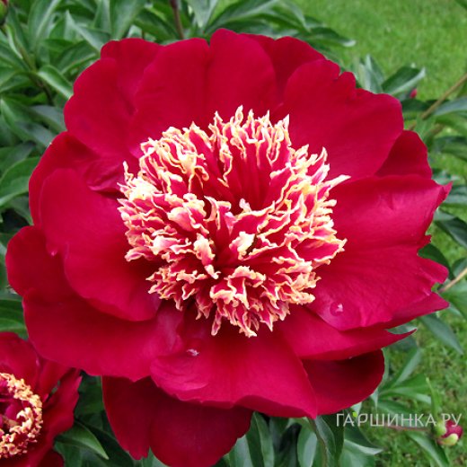 Пион Чарльз Бёрджесс (Paeonia Charles Burgess) - Цветок тёмно-красный, стаминодии узкие, красно-розовые с жёлтыми кончиками.