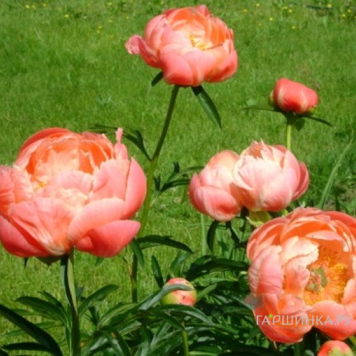 Пион Корал Шарм - От других представителей вида цветок отличается оригинальной раскраской. Сначала бутон имеет темно-розовый цвет, но по мере распускания лепестки приобретают светло-коралловый оттенок с белоснежной каймой по контуру. На заключительной стадии цветения бутон становится желтоватым. Полумахровые цветочки отличаются большими размерами - они нередко достигают 20 см в диаметре. Высота: 100 см. Срок цветения: Средний. Зона зимостойкости: 3 (-40 ° С)