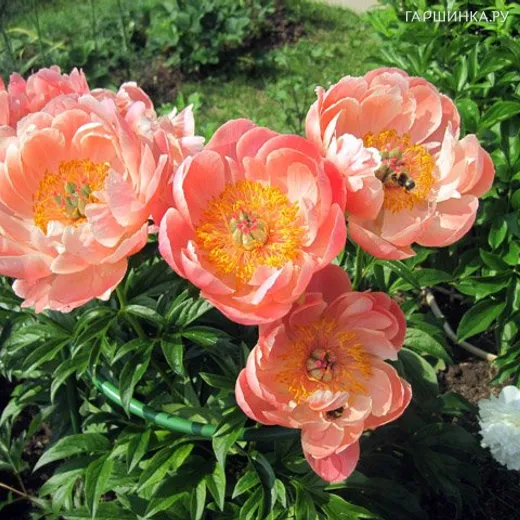 Пион Корал Суприм - Полумахровый – махровый. Гибрид. Цветок лососево-розового цвета, со светло-желтым центром, сформирован в виде широкой чаши. Стебли прочные. Листва насыщенно — зеленого цвета, кожистая. Куст растет очень энергично. Среднераннего срока цветения.. Высота: 90 см. Цветок диаметром 18-20 см. Зона зимостойкости: 3 (-40 ° С)