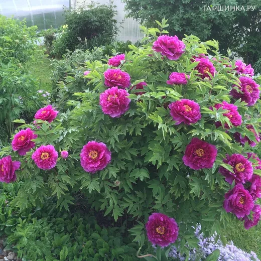 Пион Гигант из Хемозы древовидный красный - сильнорослое растение с плотным стеблем, высотой до 200 см. Цветки крупные махровые, диаметром 16 см. Лепестки нежные, гофрированные, светло-красные. Сорт отличается очень пышным цветением, в период цветения на одном кусте может распускаться от 30 до 70 крупных светло-красных бутонов. Листва ярко-зеленая. Цветение в июне. Аромат сильный. Зона морозостойкости 4.
