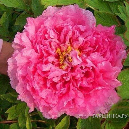 Пион Розовая водяная лилия древовидный розовый -цветок махровый, хризантемовидный, 17 х 5 см, насыщенно розовый со светло-фиолетовым оттенком в основании лепестков. Лепестки тонкие, мягкие, гофрированные. Цветки смотрят вверх или в сторону. Цветение обильное, в средние сроки. Сорт хорошо растёт на щелочных почвах. Высота 1,2-1,5 м.