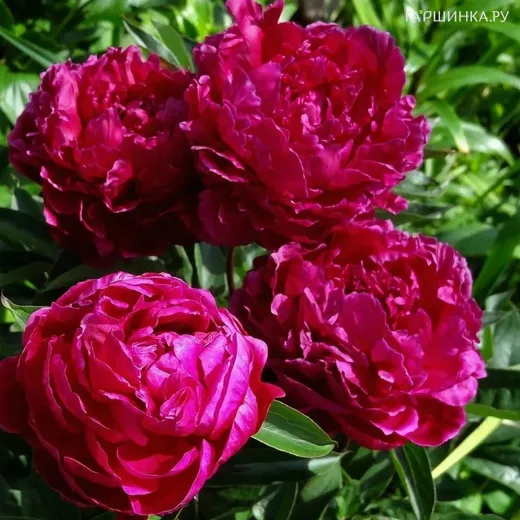 Пион Канзас - травянистый, махровый пион, образует пышные цветы насыщенного малиново-красного оттенка с густыми более мелкими лепестками собранными центре. Диаметр цветка достигает 18-20 см, лепестки крупные, округлые, в центре могут быть уложены в аккуратную розетку. Куст цветет обильно, при этом источая насыщенный аромат. Высота куста пиона Kansas достигает 80-100 см, листья рассеченные темно-зеленого оттенка. Период цетения май-июнь. Зона зимостойкости: 3 (-40 ° С).