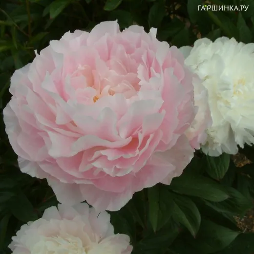Пион Мунстоун (Paeonia Moonstone) - Махровый розовидный. Цветок крупный, отличной формы, вначале розовый с перламутровым свечением в центре, затем кремовый. Аромат приятный.