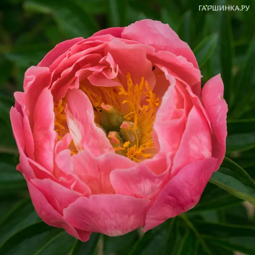 Пион Пинк Хавайан Корал - полумахровый гибрид из так называемой коралловой серии. Красивый сорт с нежными кремово-коралловыми цветами раскрытого цветка дополняются внутренними мелкими кремовыми лепестками и желтыми тычинками, источающими приятный аромат. Соцветия полумахровые, лепестки собраны в чашу правильной формы. Пион сорта Пинк Хавайан Корал имеет крупные цветы диаметром 16-20 см. Высота пиона доходит до 1,5 м. Цветет рано и очень обильно. У взрослых растений прочные стебли и блестящие зеленые листья. Данный сорт хорошо сочетается со всевозможными насаждениями и безупречно подойдет для декора.