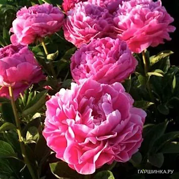 Пион Пинк Парфе (Paeonia Pink Parfait) - Махровый. Цветок крупный, розовидный, тёмно-розовый с серебристыми краями лепестков. Аромат умеренный.