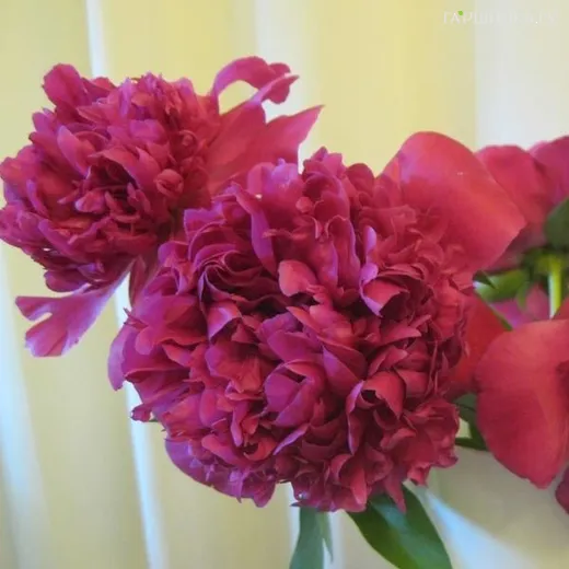 Пион Ренато (Paeonia Renato) - Махровый розовидный. Цветок пышный, красный с синим оттенком.Тонкий аромат.