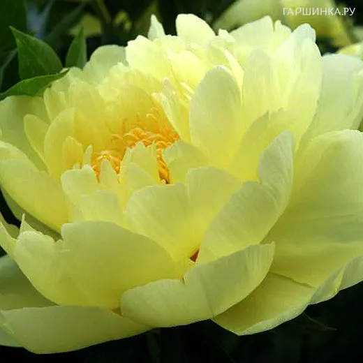 Пион Yellow относится к травянистым пионам. Цветки желтые, диаметром до 20 см. Высота растения: 70-90 см. Его цветоносы очень устойчивы и не требуют опоры, благодаря чему куст сохраняет свою форму и не разрушается под весом крупных цветков. Листва пиона остается привлекательной в течение всего сезона и более стойка к первым осенним заморозкам, чем у других травянистых сортов. Зимостойкость: высокая.
