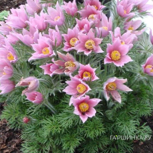 Прострел Розеа - эффектный шелковисто-опушенный первоцвет с крупными колокольчатыми розовыми цветками с многочисленными желтыми пыльниками. Высота растения 25см. Серебристо-белые листья прикорневой розетки имеют длинные черешки, неправильно глубоко рассечены. Молодые листья также сильно опушены. Цветет с апреля по май.