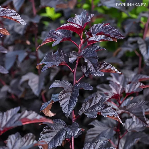 Пузыреплодник калинолистный Рубелла (Physocarpus opulifolius 'Rubella') — компактный декоративный кустарник с выразительной бордово-пурпурной листвой и аккуратной шаровидной кроной. Этот сорт ценится за стабильный насыщенный цвет листьев, устойчивость к неблагоприятным условиям и отличную декоративность в течение всего сезона. Высота взрослого растения — около 1–1,5 м, диаметр кроны — до 1,2 м. Куст растёт умеренно быстро и сохраняет привлекательный вид с весны до глубокой осени.