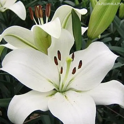 Лилия Ричмонд ЛА-гибрид/2шт - Цветки диаметром 17 см, белые, удлиненной формы, растущие вверх и в сторону. Зацветает в конце июня-первой половине июля. Высота растения 110 см. Тонкий нежный аромат.