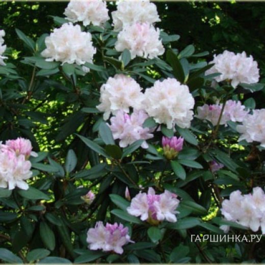 Рододендрон Эскимо - компактный, очень красиво цветущий, вечнозеленый кустарник с густой, шаровидной кроной. Сорт гибридный, выведен селекционерами Финляндии. Диаметр кроны 1,5 м , а высота взрослого растения до 1,5 м. Листья длинные, эллиптические, кожистые, темно-зеленые, с заметным жилкованием. Нежно-лиловые бутоны раскрываются и превращаются в красивые, крупные, белые цветы с золотисто-зеленым пятном в центре. Лепестки по краю слегка волнистые, полупрозрачные, поэтому имеют легкий лиловый оттенок. Цветки собраны в соцветия-кисти. Рододендрон Eskimo (Эскимо) цветет с конца мая в течение почти 3 недель. Нуждается в посадке в кислую (рН от 4,5 до 6,5), рыхлую, хорошо дренированную почву, в защищенных от ветра, полутенистых местах, не выносит переувлажнения. Нуждается в хорошем дренаже, ежегодном мульчировании и защите от весеннего солнца. Вечнозеленые сорта рододендрона получены селекционным путем и поэтому их еще называют гибридными. Гибридный рододендрон очень популярен и славится своими декоративными качествами и морозостойкостью. Отличается длинными кожистыми листьями, большими цветами, почти всех возможных оттенков, в зависимости от сорта.