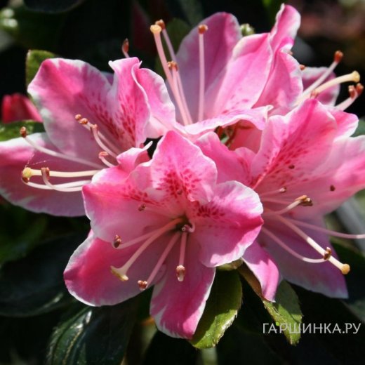 Рододендрон (Азалия) Гейша Роза - красивый обильно-цветущий кустарник завораживает своими прекрасными соцветиями с мая по вторую декаду июня ярко-розовым цветом. Куст густой, хорошо разветвлённый, компактный, подушковидный достигает до 40 см в высоту и диаметре.