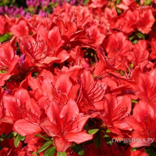 Рододендрон Фридолин тупой - Самый красивый сорт среди красноцветковых японских азалий. Растёт медленно, цветёт очень обильно, в течение трёх недель. Кусты плотные, компактные, подушковидные, до 60 см в ширину.