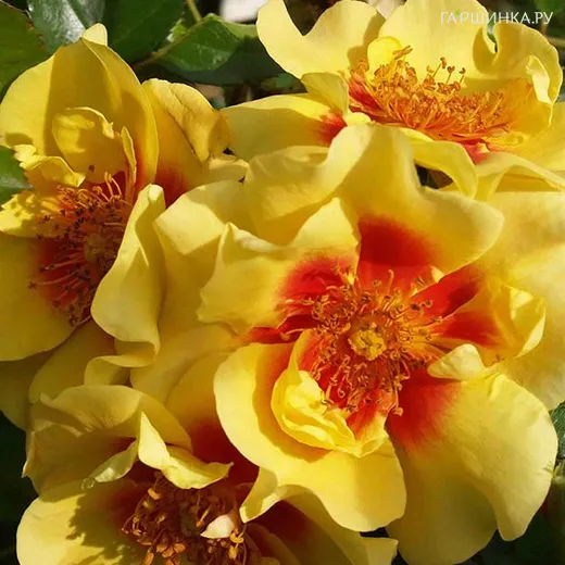 Роза Ай оф зе Тайгер, Ворнер (лиц)- простые желтые цветки с ярким красно-желтым центром. Цветки простые, от абрикосово-жёлтых до ярко-жёлтых с красным пятном в основании лепестков. Аромат лёгкий. Цветение обильное, повторное, в течение лета. Листва устойчивая к болезням. Куст высотой 90 см.