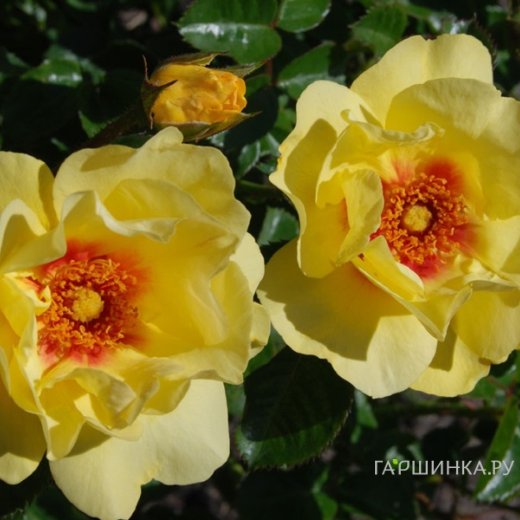 Роза Айконик Лемонад, Мейян (лиц) - двухцветный сорт. Окраска ярко-желтая с пурпурно-красным глазком. Тычинки золотистого цвета. Цветки полумахровые диаметром 10 см. Куст высотой 110-180 см. Листья глянцевые, зеленые. Аромат слабый с цитрусовыми нотками. Отличается хорошей устойчивостью к дождю. К недостаткам сорта можно отнести быстрое пробуждение, приводящее в холодном климате к подмерзанию побегов. Цветение обильное, повторное, продолжается до заморозков. Зона морозостойкости 6 (до -23С).