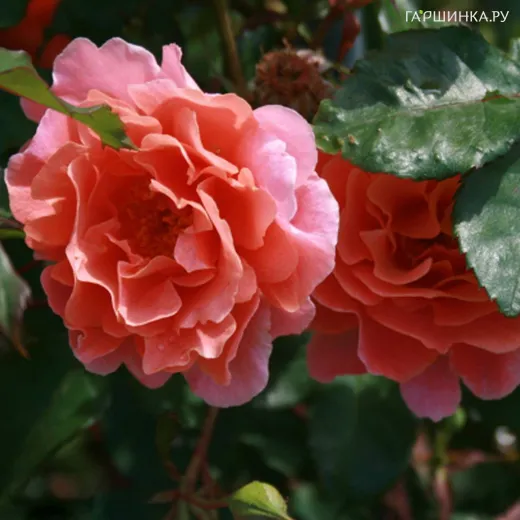 Роза Алибаба, Ворнер (лиц) - Роза необычной кораллово-лососевой окраски. Цветки крупные и душистые, с ароматом абрикоса и маракуйи. Лепестки махровые, волнистые, с густой серединой. Количество цветков на стебле 3-5 шт. Цветение непрерывное. Устойчивость к дождю и болезням хорошая. 6 зона зимостойкости.