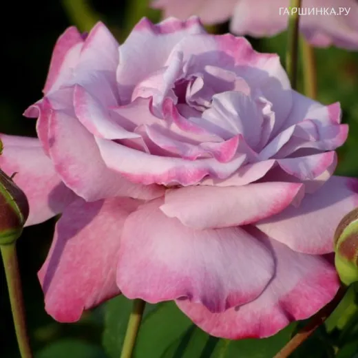 Роза Аметиста, Барни - цветок большой и очень ароматный. Листва тёмно-зелёная, глянцевая, устойчивая к заболеваниям. Куст энергично растущий, высотой 80-100 см. Сиреневый оттенок, как правило, не очень яркий, оживляется оттенком фиолетового цвета, более заметным на краю лепестков. Цветки большие, махровые, диаметром 8-10 см. Демонстрирует суперобильное цветение в течение сезона. Без укрытия растение выдерживает до -23 градусов (6 зона зимостойкости).