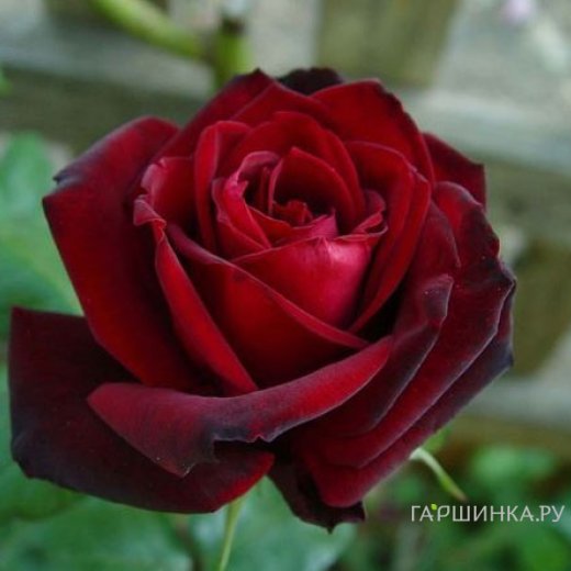 Роза Баркароле чайно-гибридная, Топалович (лиц) - Цветки раскрываются из черных бутонов в идеально сформированные цветки классической формы, хотя и появляются в небольших кистях по 7-9 шт. Они насыщенно темно-красные, с бархатным сиянием на внешних лепестках (которые темнее), и хорошо держат цвет. Цветки держатся на длинных побегах, что делает их идеальными для срезки. Молодая листва красная, затем становится темно-зеленой, блестящая.