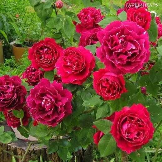 Роза кустовая Барон Гирод Деляйн (Baron Girod De L'Ainl) - обильноцветущая необычной окраски малиновая роза.