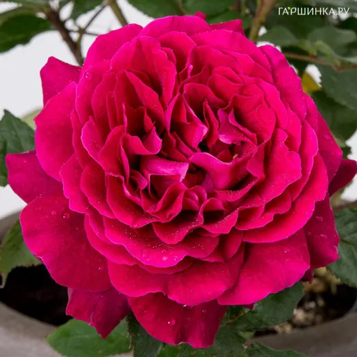 Роза Бельвью, Кордес (лиц) - чайно-гибридная. Высота растения 0.8- 1.0 м. Цветки , пурпурно-красные, спиральная укладка, 45-50 лепестков, 10 см , край волнистый , с ярким старинным ароматом, есть нотка дерева, одиночные. Листва яркая, зеленая. Побеги одиночные, повторноцветущие. Зона зимостойкости 6.