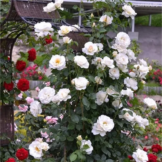 Роза Бланш Коломб, Дельбар (лиц) - мощное, сильнорослое растение. Куст высотой 300 см, шириной 150 см. Цветы махровые, белые с абрикосово-желтым основанием лепестков, диаметром 10 см. Устойчивость к заболеваниям высокая, морозостойкий сорт. Зона 6.