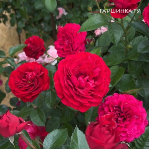 Роза Бордо флорибунда, Топалович (лиц) - Высота 0,8 м, куст легко формируется. Цветки винно-красные, 10 см, форма классическая, махровая, блюдцевидная, лепестки с легкой волной, цветение одиночное и кистями, повторноцветущая, присутствует приятный аромат. Листва крупная, зеленая, полуглянцевая. Обильноцветущий сорт.