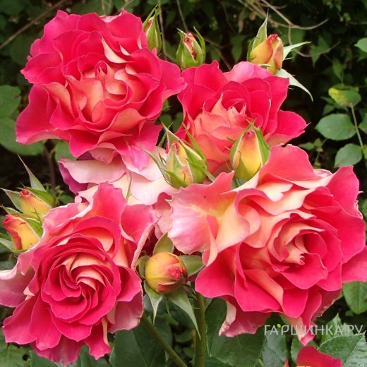 Роза Брера - бутоны двухцветные, красно-желтые. Цветки необычной формы, очень похожей на кувшинку, красновато-фиолетовые с кремовыми оттенками в нижней части лепестка, в соцветиях. Цветение почти непрерывное. Листва густая, глянцевая, устойчивая к болезням. Куст пряморослый, высотой 80-100 см и шириной 50 см.