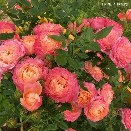 Роза-хамелеон, невысокая, листочки мелкие. Растёт в 4 зоне в контейнере. Цветёт стабильно и надёжно набирает цвет два раза за сезон. В роспуске цветы оранжевого цвета, при старении лепестки меняют цвет и становятся алыми по краю. Ароматна, нежна и надежна.