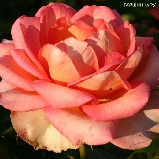 Роза Мондиаль чайно-гибридная, Топалович (лиц) - Бутоны этой розы сливового цвета, распускаются в кораллово-розовые в центре цветки с желтыми полутонами у основания лепестков. Аромат слабый, цветки появляются все лето и осень. В теплом климате роза вырастает очень высокой, рекомендуется для изгородей, заднего плана бордера или чтобы закрыть некрасивый вид. Прекрасно подходит для срезки. Куст прямостоячий, с густой блестящей листвой. Молодой прирост красноватый.