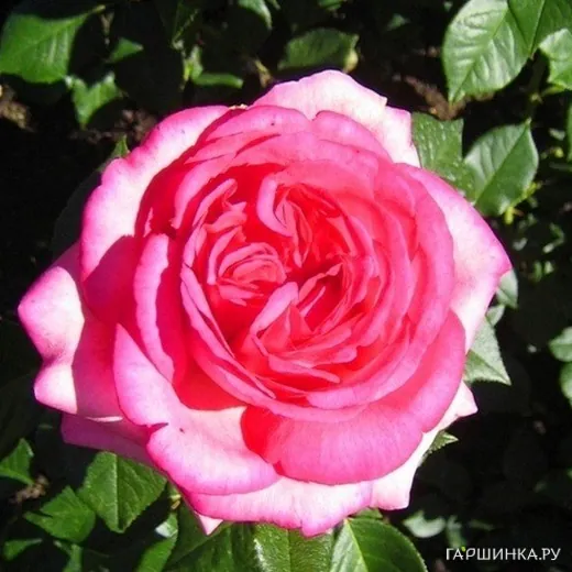 Роза Вальцертраум чайно-гибридная, Тантау (лиц) Бутон зеленовато-кремовый с темно-розовыми полосками и штрихами, округлый. Цветок темно-розовый, очень устойчивый к неблагоприятным погодным условиям (солнце, дождь), розетковидный, густомахровый (105 - 110 лепестков), диаметр 9 - 11 см, обладает насыщенным ароматом, долго сохраняет форму. Цветение позднее, продолжительное. Растение крепкое, высота куста 80 - 120 см. Лист темно-зеленый, крупный, глянцевый, плотный. Морозостойкий сорт, хорошо переносит жаркое лето.