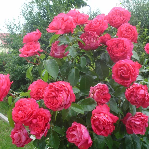 Роза Черри Леди чайно-гибридная - тёмно-малиновая окраска бутона и вишнёво-розовая расцветка самих лепестков гармонично сочетаются с розовым цветом, который здесь является главным. Очертания бутона напоминают округлый цветок с чашеобразным исполнением. Центр цветка приподнят, размеры цветка приближены к особо крупным – 9… 12 см. По количеству лепестков вид Черри Леди относят к особо махровым культурам: их численность колеблется от 50 до 60. Выглядят они, словно резные по краям, как зазубренные – эта особенность придаёт им элегантности.