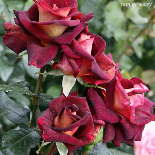 Роза Эдди Митчел - цветки бархатисто-красные, позднее почти черные, с золотисто-желтой изнанкой. Аромат отсутствует. Цветки бокаловидные, около 10 см в диаметре, состоят из 30 лепестков, появляются обычно по одному. Куст ветвистый, средней высоты.