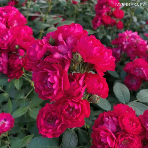 Роза Фейри Данс, Харкнесс (лиц) - группа флорибунда. Высота растения 0.75 м. Цветки темно-розовые, малиновые, 4 см, густомахровые, чашевидные. Соцветия кисть, ароматная. Листва крупная, яркая, зеленая. Сорт выпускает много побегов, повторноцветущая. Зона зимостойкости 4.