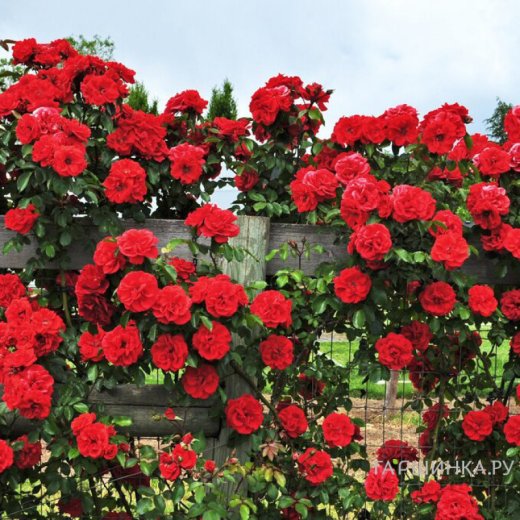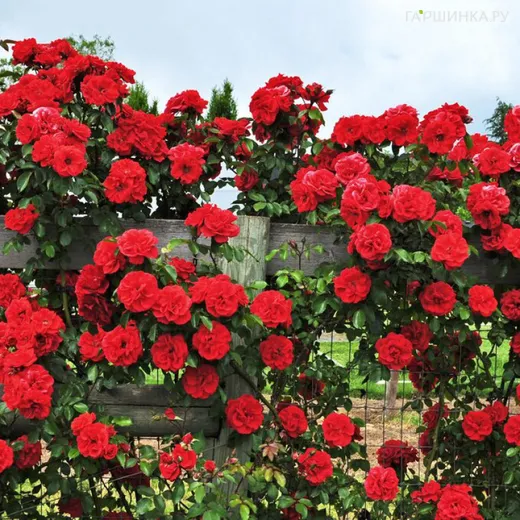 Роза Флорентина, Топалович (лиц) - группа плетистых роз. Размер плети 2,0 м, направляются легко. Цветки яркие, красные, 10 см, плотно набиты, форма классическая, густомахровая, чашевидная, цветение кистями и одиночное, повторно цветет, присутствует легкий цветочно-фруктовый аромат. Листва яркая, зеленая, крупная, полуглянцевая, темная.