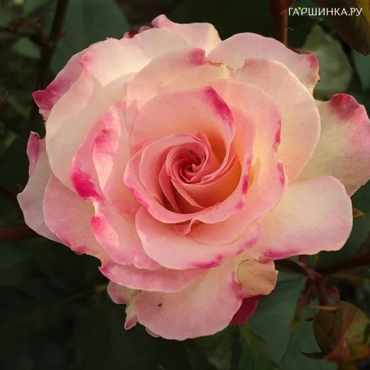 Роза Шарль Азнавур флорибунда, Imperial Rose - Своей популярностью сорт обязан обильному и быстро повторяющемуся цветению. Цветки полумахровые, с красивыми волнистыми лепестками и маленьким пучком тычинок в центре. Цветки, раскрывшись, цвета слоновой кости с розовым центром, затем проявляется темно-розовая окантовка лепестков, а кремовый выгорает до чисто-белого. Цвет выгорает на ярком солнце, так что в жаркую погоду цветки практически белые. Лучше выглядит в сухую погоду. Цветки появляются в кистях по 5-15 шт, хорошо стоят в срезке. Листва темно-зеленая, блестящая. Куст компактный, очень обильно цветет.