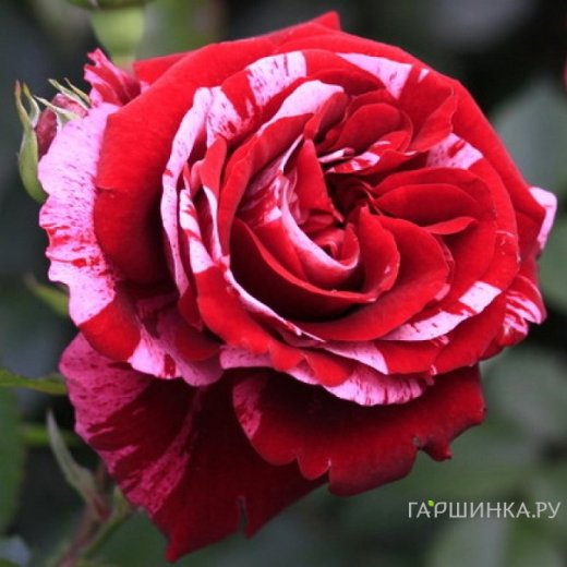 Роза Дип Импрешн флорибунда, Тантау (лиц). Цветки чудесно окрашены – они тёмно-красные изнутри и освежены светло-розовыми, нерегулярно появляющимися полосами. Диаметр цветка: 6-8 см. Цветки с лёгким ароматом малины. Растение кустистое, особенно со второго года посадки, исключительно плотное, округлое и закрытое, даже во время второй волны цветения. Листва тёмно-зелёная, средней величины и сильно блестящая.