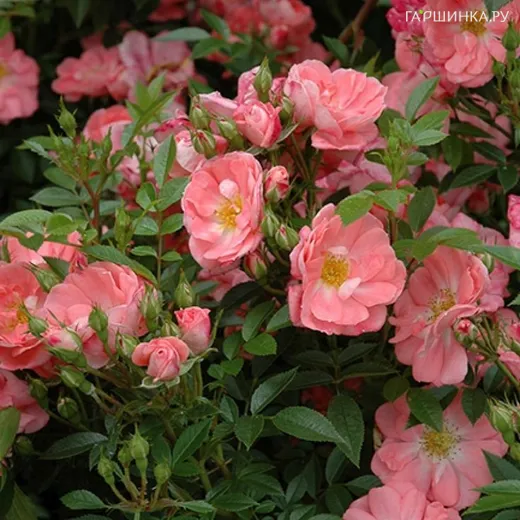 Роза Ферди, Мейян (лиц) - можно отнестти к группе кустовых. Куст формируется легко, высота 1,5 м. Цветки кораллово-розовые, в центре белое пятно, темнеют в красные, 4 см. Лепестки волнистые, форма соцветия полумахровая, классическая, цветение кистями один раз за сезон, присутствует приятный легкий аромат. Листва зеленая,глянцевая, некрупная. Зона 6.