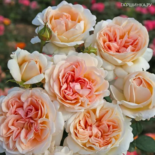 Роза Гросгерцогин Луиза, Кордес (лиц) - Бутоны имеют розовый окрас, цветы розово-абрикосовый. Бутоны обладают яйцевидной формой, но когда превращаются в цветы диаметром около 10 см, форма становится чашевидной. Сорт густомахровый, поскольку на цветах вырастает до 65 лепестков. Все бутоны располагаются в соцветиях, порой вырастают на стебле в одиночку. Если и собираются группами, то по 2-3 шт. Побеги на кустах розы прямостоячие, располагаются вертикально. Отличается этот сорт большой силой роста. Все побеги сильно разветвленные. Приблизительная высота кустарника около 1 метра, ширина розы этого сорта до 0.5 м. Листья у Гроссгерцогин Луизы темного зеленого цвета, с привлекательным глянцевым блеском.