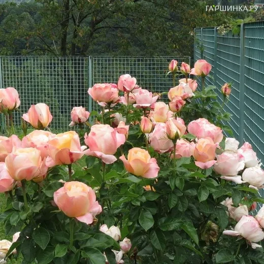 Цветы светло персиковые с розовыми оттенками и желтым центром, махровые (37-38 лепестков), диаметром 13-14 см, чашевидной формы. Цветение большим количеством чаще одиночных цветков. Аромат у розы от мягкого до сильного, романтичного стиля парфюма, нежного, насыщенного сладкого аромата фруктов. Цветение обильное, периодическое, с начала сезона до заморозков.