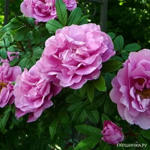Роза Васагейминг канадская парковая (лиц) – Цветки крупные, махровые, ароматные, ярко-малиновые, позднее выгорают до розовых. Форма цветка: блюдцевидная. Сильнорослый куст с длинными побегами. Эта роза была выведена для выживания в условиях суровых канадских зим, но хорошо себя чувствует и в южных садах.