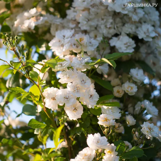 Роза Хеди Гримм - обладает длинными крепкими побегами, достигающими 2,5 м. Это делает ее идеальным выбором для использования как плетистой розы. В ширину куст распространяется на 1,5 м, подчеркивая свою величественность. Побеги покрыты густой зеленью, а блестящие, нежные листья добавляют шарма. Буйное и повторное цветение начинается в июне, принеся волны небольших, 5-сантиметровых цветков, собранных в пирамидальные соцветия по 10 штук. Белоснежные лепестки образуют красивый контраст с ярко-желтыми тычинками, видимыми в полном раскрытии цветка.